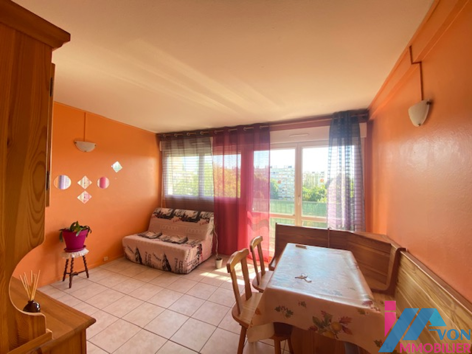 Salon lumineux ouvrant sur un balcon de 3,40 m² avec vue dégagée sur le parc